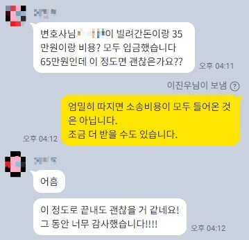특히 변호사 비용이 너무 많이 나올 것 같습니다.