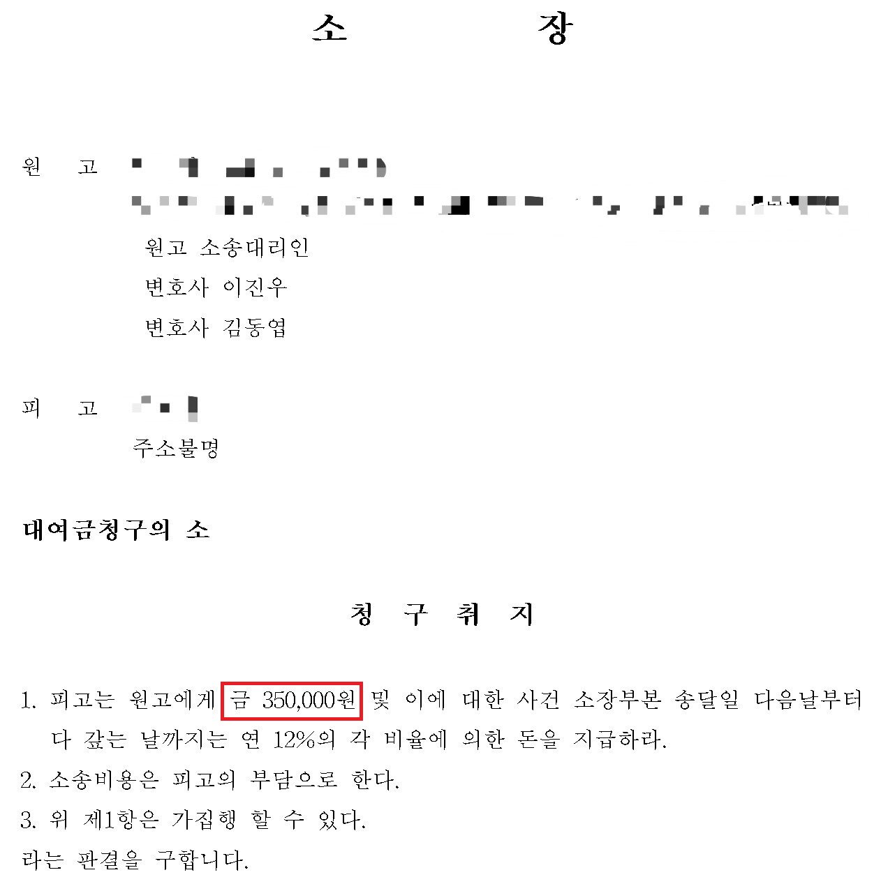 <김&리 법률사무소 실제 소액소송 사례>