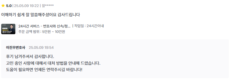변호사님께 감사드리며, 법적 문제로 고민하시는 분들께 강력히 추천드립니다.