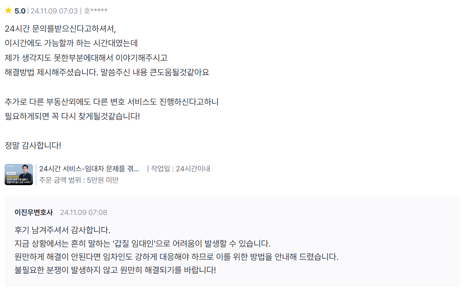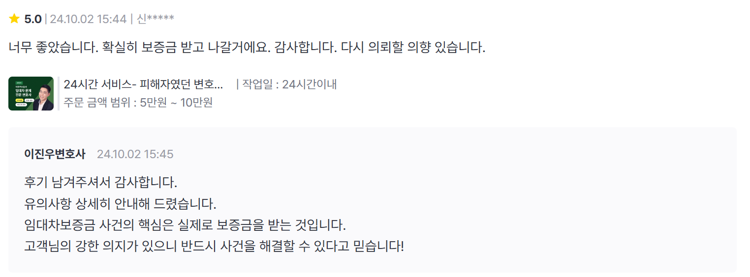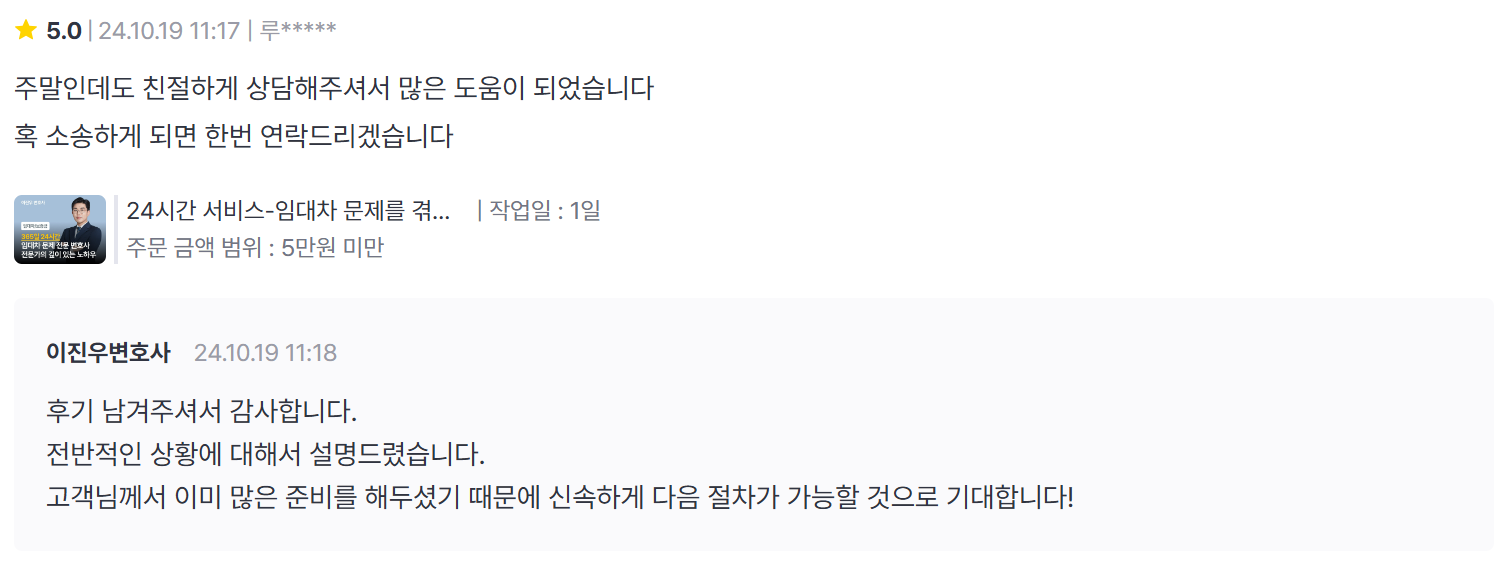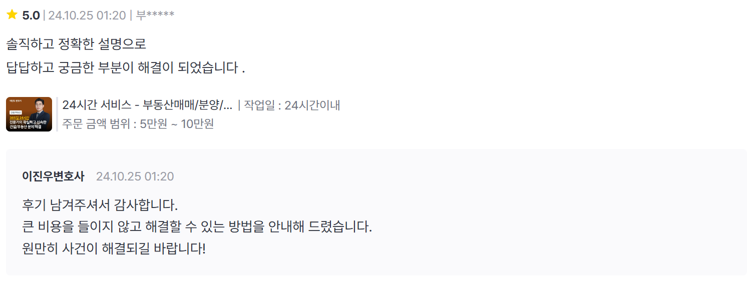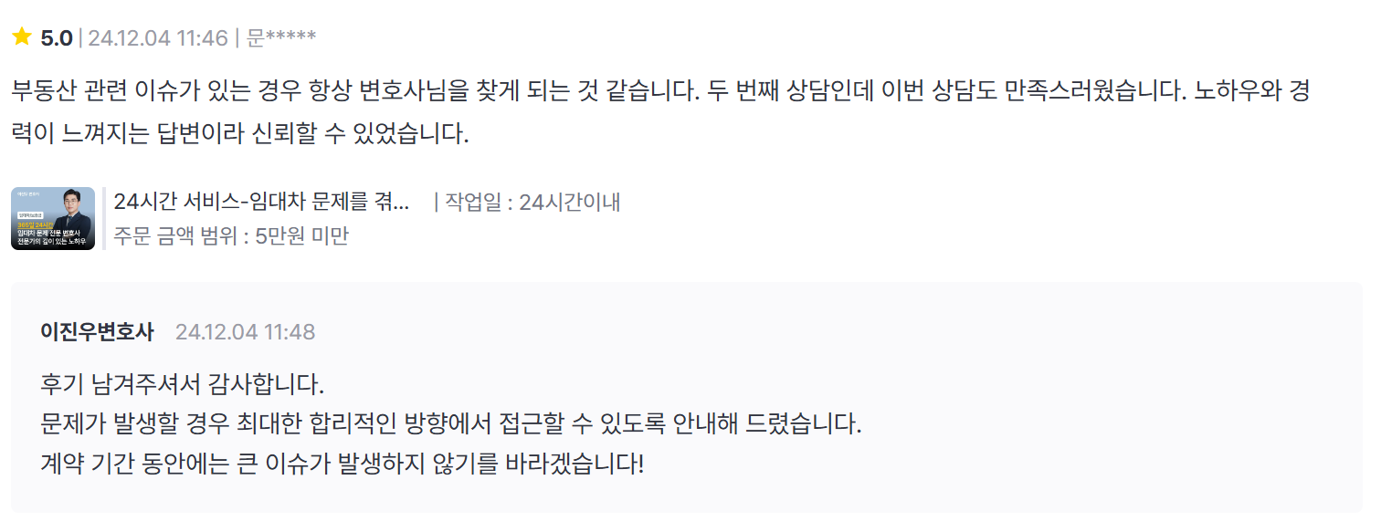 부동산 관련 이슈가 있는 경우 항상 변호사님을 찾게되는 것 같습니다.