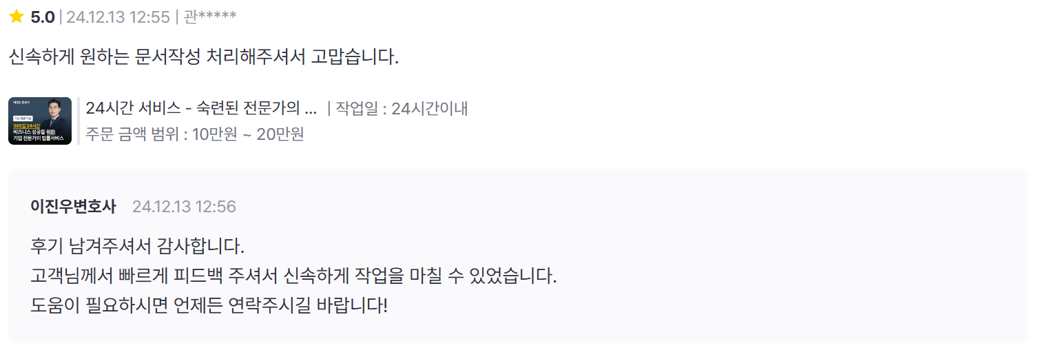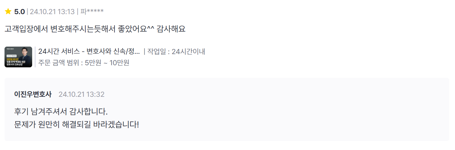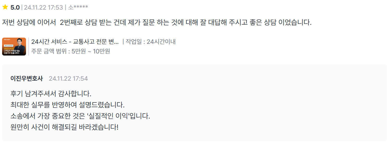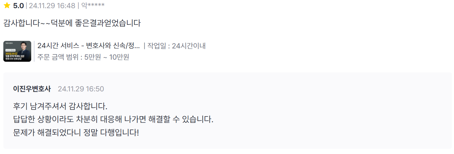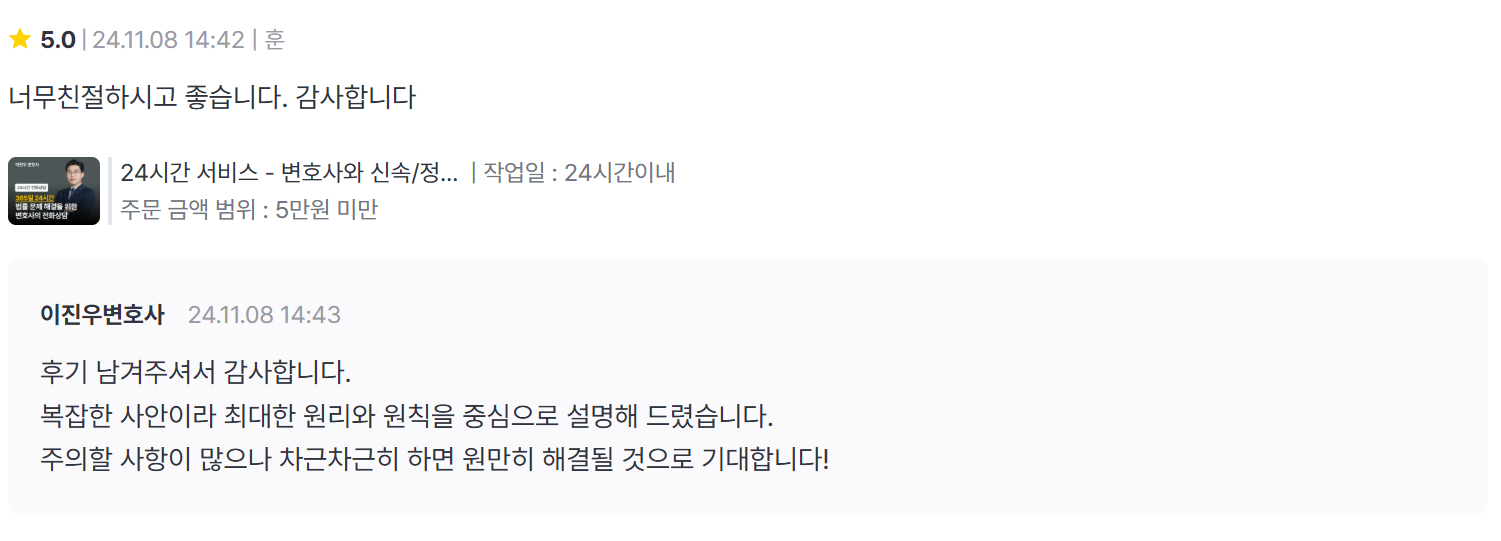 변호사님 덕분에 도움이 굉장히 많이 되었습니다.