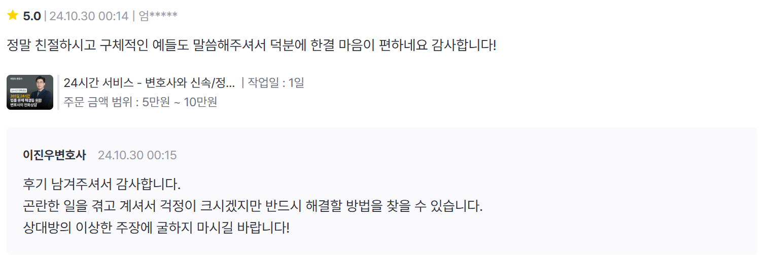 변호사님께서 솔직하고 정확하게 설명해 주셨습니다.