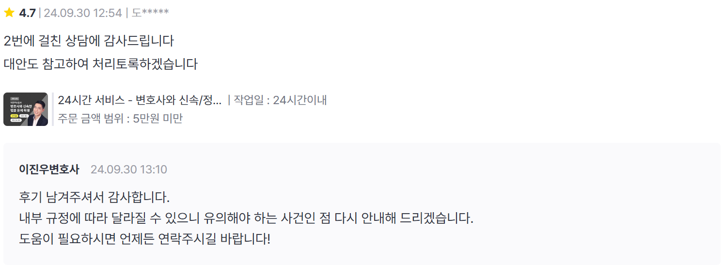 다음에도 변호사님 도움 필요하면 다시 방문하겠습니다!